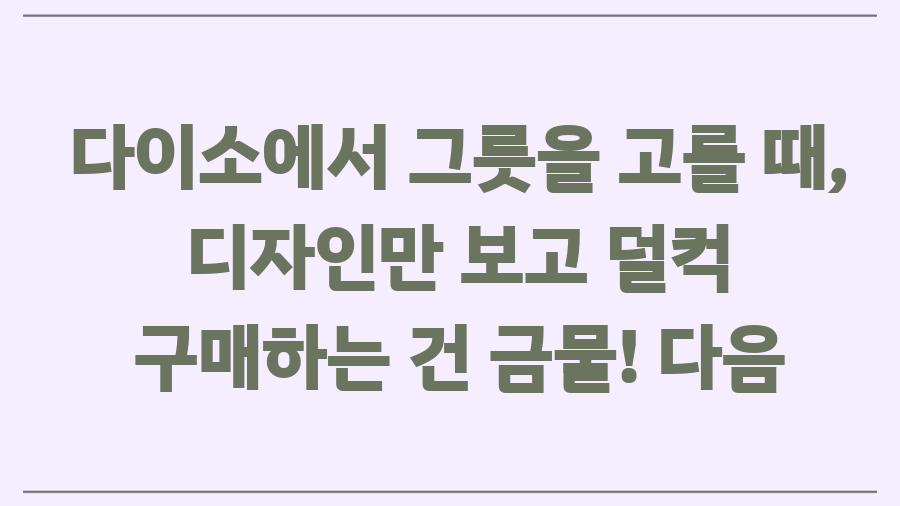 다이소에서 그릇을 고를 때, 디자인만 보고 덜컥 구매하는 건 금물! 다음 사항들을 꼼꼼하게 체크하면 후회 없는 선택을 할 수 있습니다.