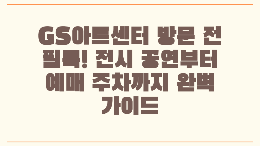 지금 바로 눈앞에 펼쳐질 황홀한 전시와 감동적인 공연, 그리고 방문객을 위한 세심한 편의 시설까지, GS아트센터를 100% 활용할 수 있는 모든 정보를 꼼꼼하게 알려드릴게요.
